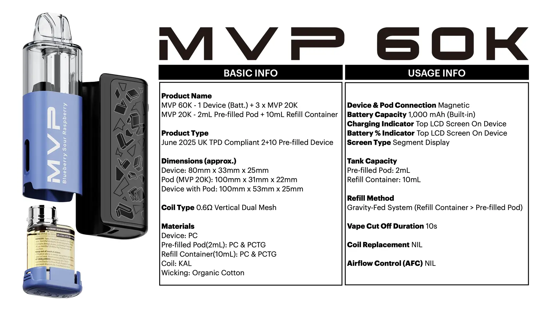Switching pods has never been simpler — just slide in the new cartridge, lock it in place, and you’re ready to vape. With MVP 60K’s intuitive design, swapping flavours or replacing your pod is quick, clean, and hassle-free. No tools, no fuss — just smooth transitions and uninterrupted satisfaction.